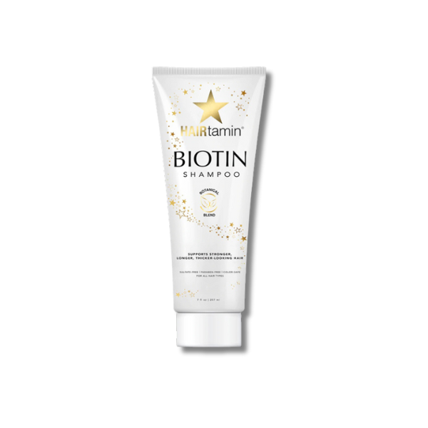 Unlike harsh cleansers, it gently purifies without stripping natural oils, leaving hair softer, shinier, and full of life. Infused with the light, refreshing scent of rosemary and aloe, this daily essential is safe for all hair types, including color- and keratin-treated, and helps create a healthier scalp environment while supporting fuller, thicker-looking strands over time. For optimal results, pair with HAIRtamin® Biotin Conditioner and HAIRtamin® supplements for a complete inner/outer approach to hair wellness.