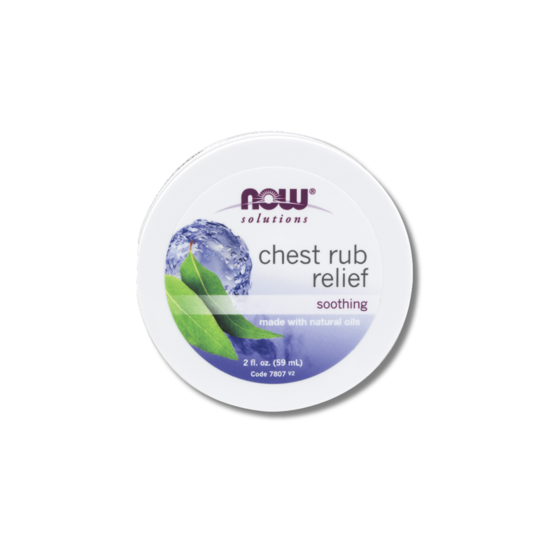 NOW® Solutions Chest Rub Relief combines soothing natural oils with fresh menthol aroma for free breathing in any environment and in any season.